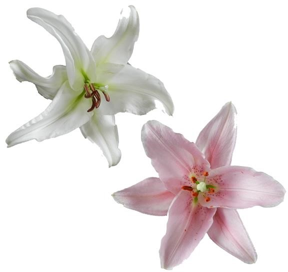 10 STEMS PINK & 10 STEMS WHITE 2/3 BLOOMS ORIENTAL LILIES